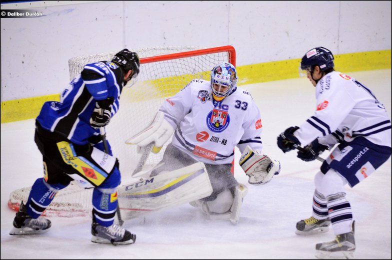 Brankář Lukáš, ale puk našel a pokryl. Vedle něj se odehrála menší potyčka mezi Kolmannem a Dujsíkem. Tři sekundy před koncem utkání proskákalo Kunstovo nahození mezi hráči a jen těsně minulo branku.