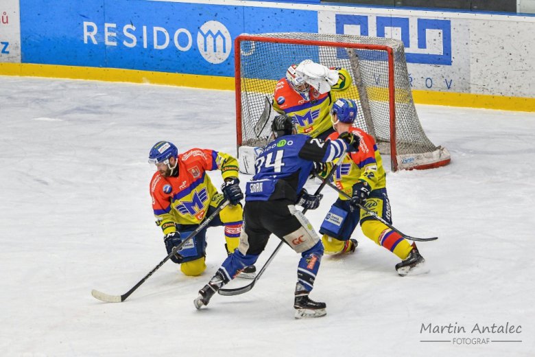 Ve 27. minutě hráli hosté zle zatápěli Bláhovi, jenž měl co dělat, aby pochytal střely Karabáčka a Pýchy, pak mu pomohli uklidit puk obránci. Pak se do útoku dostali domácí, Kotala se Semanem dostali puk k Rehušovi, jehož bombu Kváča lapil.