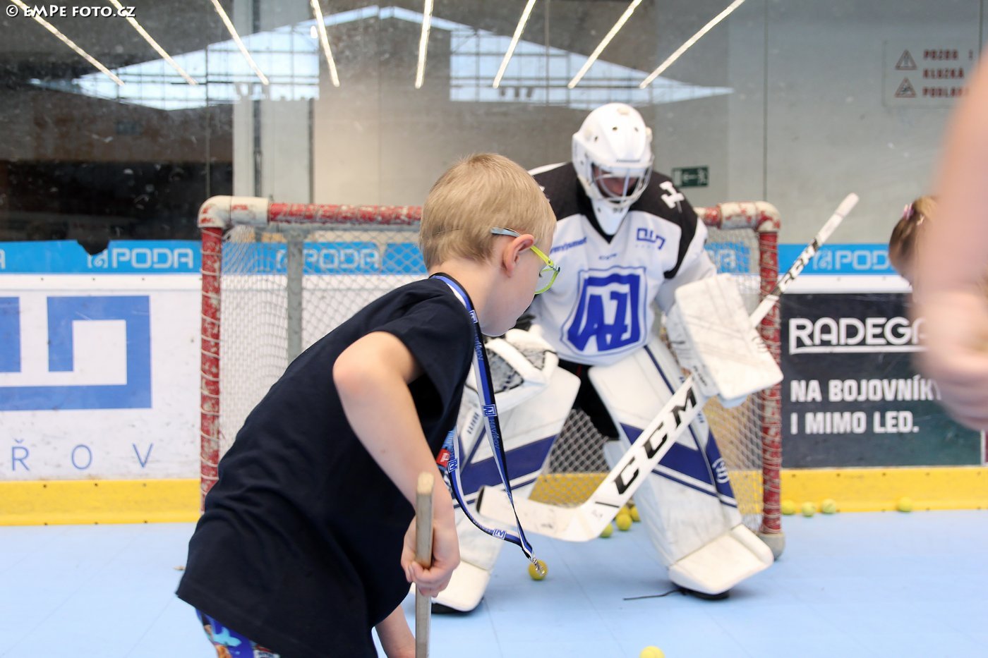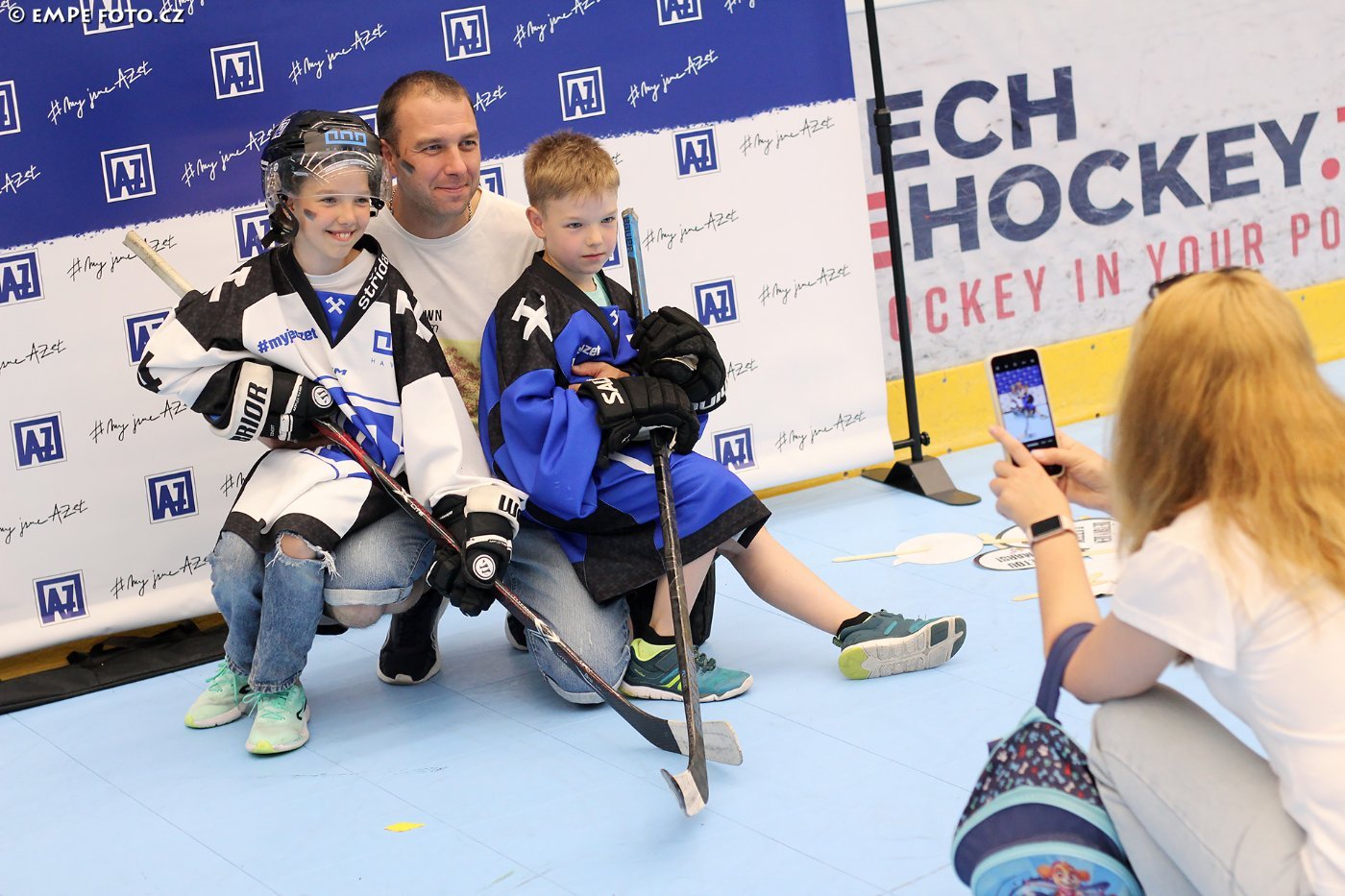 Děti se po příchodu k ploše, která se ještě před několika málo týdny pyšnila přívlastkem ledová, zaregistrovaly, následně je čekalo několik sportovních stanovišť, která byla pod patronátem hráčů A týmu či AZeťáckých trenérů. Děti tak na stanovištích potkávaly třeba Matouše Ćmiela, Marcela Kunce, Viktora Konečného, Kubu Apolenáře, Adama Tomigu, Vojtu Pindela, Ondru Ševčíka a další, nechyběli ani trenéři mládeže, z realizáku A týmu byli přítomni např. Adam Vrba nebo Marek Pavlačka, který bedlivě dohlížel, a nejmenším také velmi pomáhal, na stanovišti basketbalovém. Dítka taká skákala v pytlích, skládala "komín" z puků, skládala znak AZetu formou puzzle, absolvovala opičí dráhu, střílela na brankáře v hokejové výstroji, kdy pod maskou se skrýval gólman 9. třídy Ondra Kozel, těch zábavných stanovišť byla velká spousta. Rodiče si mezitím mohli zahrát třeba badminton, mnozí využili i zcela nový fotokoutek, ve kterém se nechali zvěčnit v hokejové výstroji... V předchozích letech jsme jej na ploše nezaznamenali, byla to novinka? "Ano. Každý rok se snažím, aby bylo součástí akce něco nového. Loni jsme přidávali nové stanoviště, letos přibyla foto stěna. Chytrý telefon s foťákem má v kapse už dneska skoro každý a pro mnoho nehokejových dětí bylo zážitkem i to, že si mohly na sebe obléknout opravdový dres, přilbu nebo hokejové rukavice. A odnést si domů památku na akci i ve formě fotografie", dodává paní Foldyna Holendová, která také trochu poodkrývá klubovou filozofii.