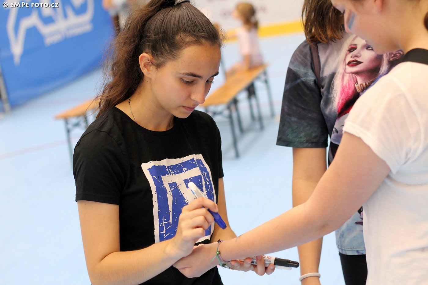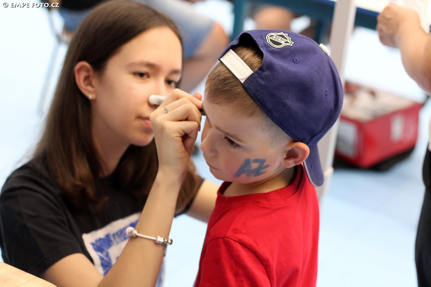 Účast dětí, rodičů a různého doprovodu byla opravdu vysoká, plocha byla místy téměř plná, děti se bavily, užívaly si to, mezi nimi pobíhaly dívky, které nejen dětem malovaly na tváře AZeťáckou trikoloru, aby vše ladilo do tří klubových barev. Jednou z dívek, která se (nejen) o tváře dotyčných starala, byla slečna Kateřina Kubiczková, kterou mnozí znají jako milou a usměvavou prodavačku z klubového fanshopu. Svou pozitivní energii v sobotu přelévala na všechny příchozí. Jak moc se lidé zdráhají, nechat si vyzdobit tváře, jak to berou děti, jak dospěláci apod.? "Můžou nastat dvě varianty. Ta méně náročná je, že lidé uvidí barvy na obličej a sami za mnou přijdou, že chtějí nakreslit vlajku nebo nápis AZ. Pak je tu samozřejmě druhá, klasická varianta - vyhlídnu si někoho, kdo má čistý obličej a jdu ho oslovit. Pokud jde o děti, ty se většinou rády nechají pomalovat. S dospěláky už to tak jednoduché není. Je super, když je nějaký rodič velmi ochotný, ale někteří pochopitelně nechtějí, například, když jedou zpátky domů autobusem apod. Pokud je nepřesvědčím, nedá se nic dělat, a tak se pokusím alespoň o kompromis - nakreslit trikolóru na zápěstí. To už dospěláci většinou svolí a já odcházím spokojená. Věřte, že ve finále je pak fajn pocit, když ke konci dne už skoro nemůžete najít člověka, který by barvy AZetu někde namalované neměl", dodává slečna Kubiczková...