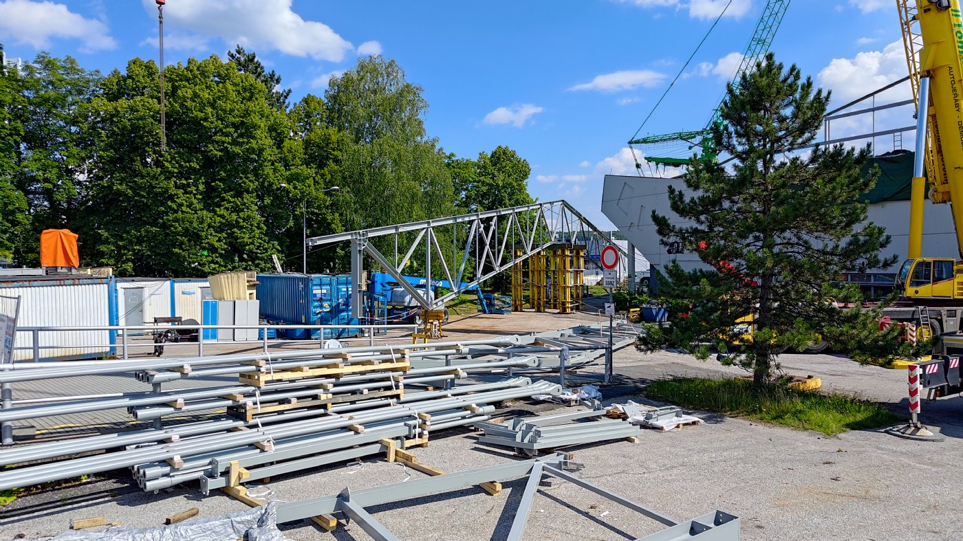 Daniel Vachtarčík: "Já k tomu ještě dodám, že náročnost té stavby je i v tom, že jsme v podstatě v zastavěné lokalitě, kde jsou mimo jiné dvě obchodní centra, čili ten ruch kolem je velký, je to hodně jiné, než když je staveniště tzv. volné, nikdo kolem dokola nechodí apod. Tady se stavba provádí v zóně, která není v mnohém úplně bezpečná, čili řešili jsme i uzávěrky ulic, uzávěrku ulice Hálkova, která vede za zimním stadionem a navíc je pouze jednosměrná, tohle všechno se promítlo a promítá na tom, že celý projekt není úplně snadný.