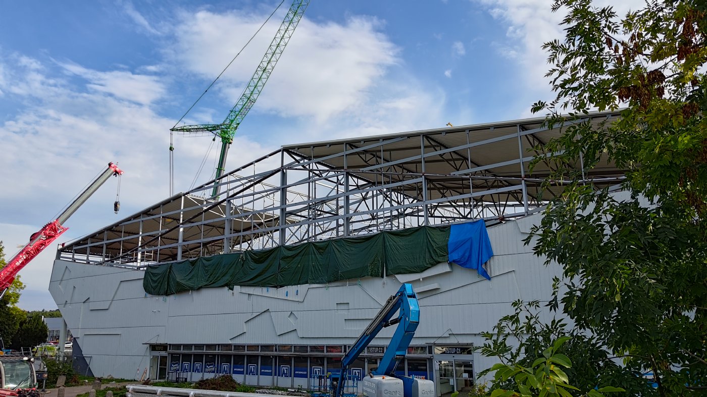 Havířovský zimní stadion, který aktuálně nese název Gascontrol aréna, byl slavnostně otevřen 13. listopadu 1968 druholigovým hokejovým zápasem mezi AZ Havířov a Duklou Hodonín. Náš celek tehdy prohrál 2:3. Od té doby čas neúprosně běží, zimák svým účelům slouží už takřka 57 let. Po skončení minulé sezóny nastoupil na cestu náročné rekonstrukce, která se nyní týká výměny střešního pláště. Práce probíhají od května, jsou v plném proudu, zvídaví Havířované se u zimního stadionu, třeba cestou na nákup, nebo když jdou jen tak kolem, často zastaví, práce pozorují, jsou zvědaví. A mají také spoustu otázek, protože občas mohou mít pocit, že informací nemají tolik, kolik by jich mít chtěli. O samotné rekonstrukci, o tom, jak probíhá, v neposlední řadě také prahnou po nějakém datu, kdy do Gascontrol arény, nejen na zápas AZetu, opět zavítají...