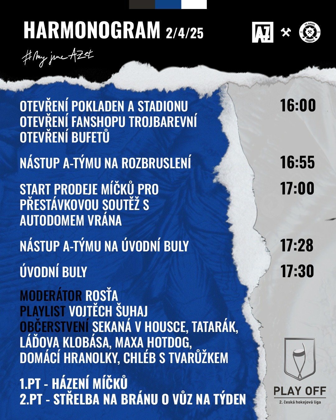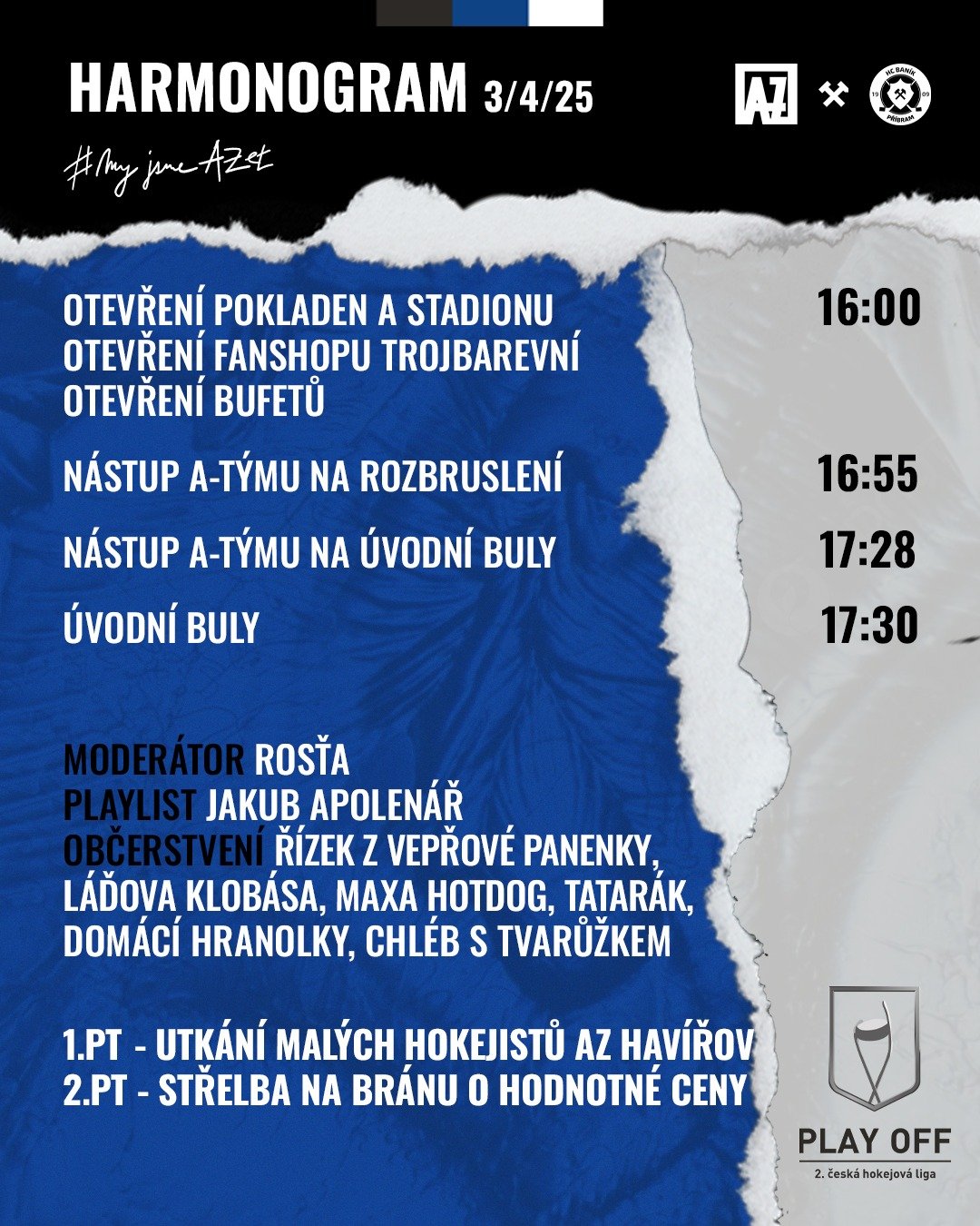 Středeční i čtvrteční utkání v havířovské Gascontrol aréně startuje shodně v 17:30. Už v 16:00, ale to už z play-off znáte, otevírají brány stadionu, můžete si přijít dát pivko, něco dobrého na zub, poklábosit s přáteli, nasát atmosféru. Krom sledování hokeje pak o přestávkách můžete i soutěžit. "Soutěž, soutěž, soutěž", řečeno hned 3x po sobě, jak to od moderátora Rosti známe, bude ve středu i ve čtvrtek, ceny pro ty nejlepší klub připravil velice hodnotné, pokud si věříte ve střelbě na bránu, bude středa i čtvrtek, ve středu bude v kase "dřevěný David Sachr", vaším šťastným dnem. Štěstí se může skrývat třeba za multifunkčním toastovačem, bezdrátovými sluchátky či powerbankou...