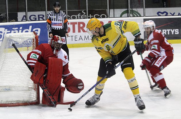 Branky a nahrávky:38. Březina (Kopta, Žák), 48. Březina (Frolo) – 13. L. Krejčík (Šafránek, A. Růžička), 22. Jankovský (Šafránek, Nedvídek), 25. Barák (Z. Doležal, M. Ondráček), 34. L. Krejčík (J. Holý, Račuk)Vyloučení: 7:9. Využití: 0:1. V oslabení: 0:0. Diváci: 3078. Střely na branku: 33:21.