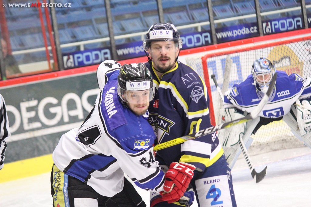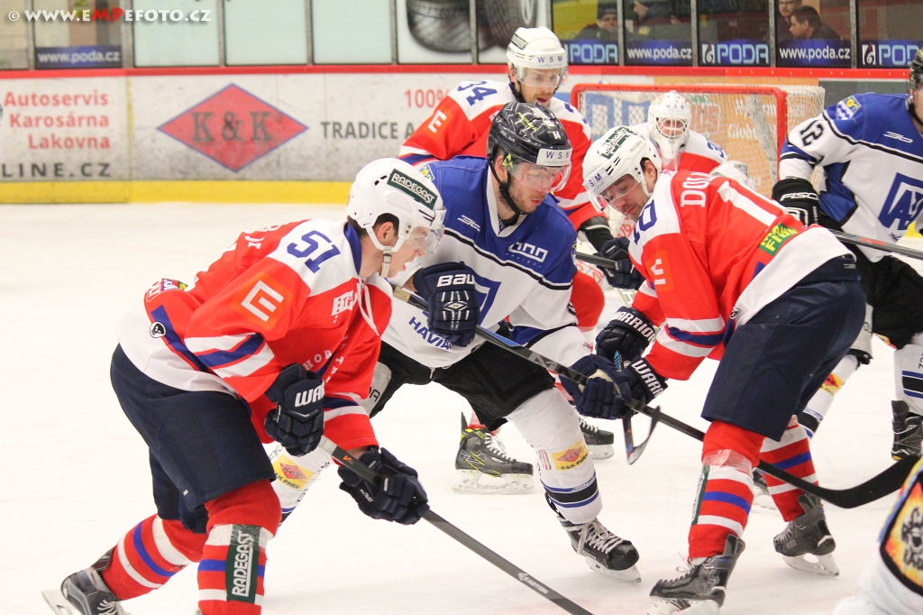 Branky a nahrávky: 8. Kaláb (Dolníček, Horký), 12. Vodný (D. Mikyska, T. Havránek), 15. Kusko (R. Zohorna, T. Havránek), 40. Horký (Kaláb, Dolníček) – 19. Drtil (P. Beránek, Postnikov), 31. Krisl (Sikora). Rozhodčí: Čech, Skopal – Polák, Kotlík. Vyloučení: 2:8. Využití: 4:1. Střely na branku: 25:25. Diváci: 1 043.