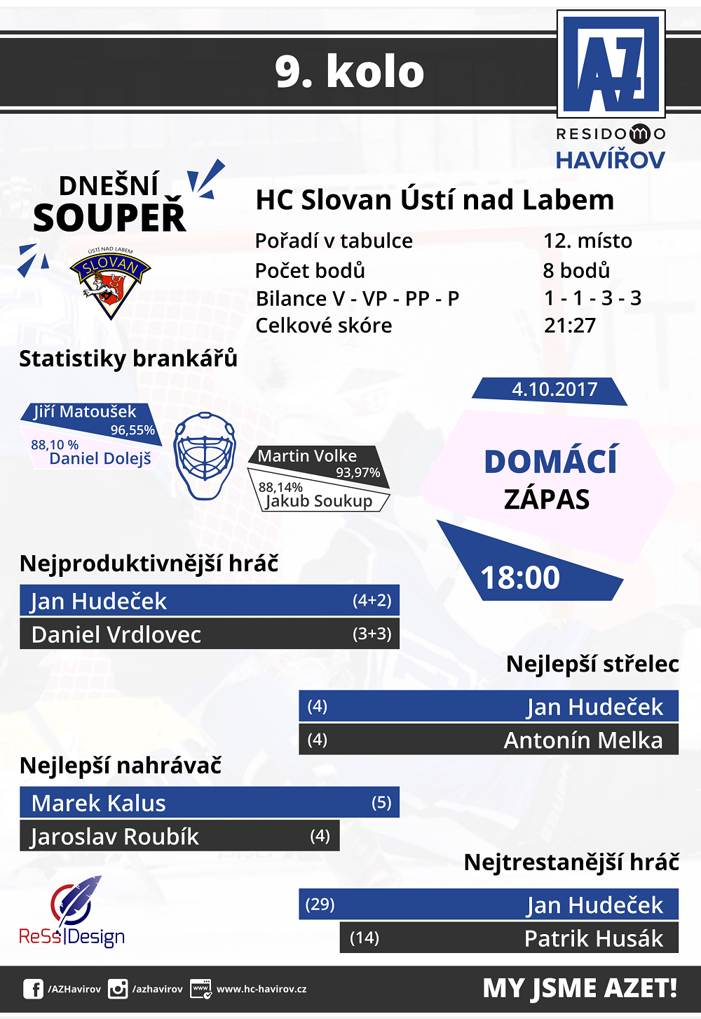 Sestava AZ RESIDOMO Havířov: Dolejš – Krisl, R. Havel, Postnikov, Drtil, Staněk, Petran – Kanko, Matai, Sikora – Pořízek, Hudeček, M. Kalus – P. Beránek, Maruna, Gřeš – Kotala, Cihlář, L. Bednář.