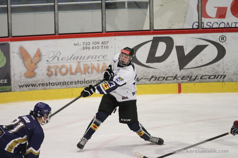 V sobotu po poledni nastoupili starší dorostenci AZetu na Kladně k zápasu proti druhému místnímu klubu - PZ. Tentokrát od úvodu nenechali nikoho na pochybách, že svou roli favorita hodlají beze zbytku splnit. Už v úvodní třetině nasázeli svému soupeři tři branky a v polovině utkání už, i díky třem využitým přesilovkám, vedli 5:0. Domácí ve třetí třetině vstřelili jen čestný úsěpch a tak se po jasné výhře 5:1 vezou do Havířova tři body. Dvěma brankami a jednou asistencí se na výhře podílel útočník Dominik Moravčík (na snímku). Další zápas sehraje AZ až v pátek 13. února doma proti Č. Budějovicím.