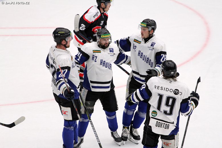 Závěr zápasu však patřil jednoznačně Orlům. V 53. minutě totiž dostal Tomáš Svoboda přihrávku krásně do jízdy na pravé křídlo a prudkou křížnou střelou nad beton překonal Haase – 2:3. Zhruba za minutu a půl už hosté srovnali na 3:3. Orli totiž výborně napadali v útočném pásmu a opět využili havířovskou chybu ke vstřelení gólu. Puk se dostal na brankoviště k Tomáši Svobodovi, který neměl problém jej zavěsit do odkryté části branky. Parádní obrat Orlů byl dokonán v 58. minutě, kdy Radim Matuš po rychlé akci z pravého kruhu opět trefil křižnou střelou prostor nad pravým Haasovým betonem - 3:4. V čase 59:28 se utkání zdramatizovalo vyloučením Orlů. Havířov zároveň zkoušel i hru bez gólmana, ale skóre se už mu nepovedlo dorovnat.