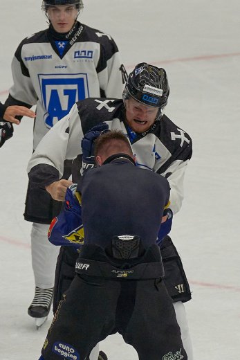 V polovině hry byl rozdíl ještě větší. Nejproduktivnější hráč loňského ročníku Tomáš Franek si počkal mezi kruhy na přihrávku od Bednáře a velice ostrou ránou nedal Bizoňovi šanci – 5:0. Bylo vidět, že hosté už jsou naprosto bezradní a neví, jak se s aktivní hrou domácích hokejistů vyrovnat. Možná také proto se před brankou Velkého Meziříčí strhly dvě potyčky. Za tu jednu byli domácí Ščurek a hostující Slabý vykázání do kabin. Když se hra znovu rozběhla, netrvalo to dlouho a AZet si přidal už šestou trefu.