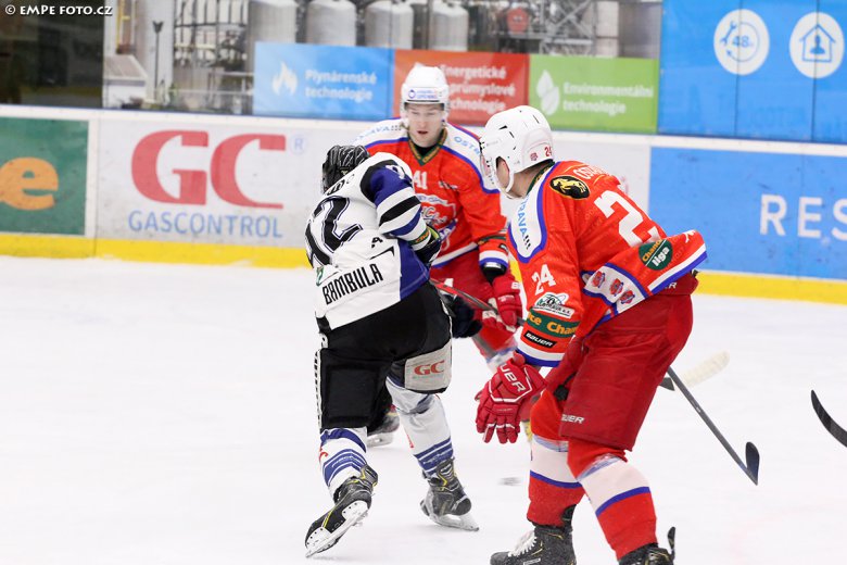 Branky a nahrávky: 40. Kotala (O. Procházka, Rašner), 46. Bambula – 9. Gřeš (Sikora, Slavík), 21. Hudeček (Sikora), 50. Guman (Toman, Špaček), 58. Kanko, 60. Hudeček (Sikora), 60. Zdeněk (J. Káňa, Husák). Rozhodčí: Cabák, Pilný – Měkýš, Otáhal. Vyloučení: 3:6. Využití: 1:0. V oslabení: 1:2. Diváci: 1416. Střely na branku: 36:23 (12:9, 9:6, 15:8). Zblokované střely: 12:6. Vhazování: 38:31. Průběh utkání: 0:2, 2:2, 2:6.